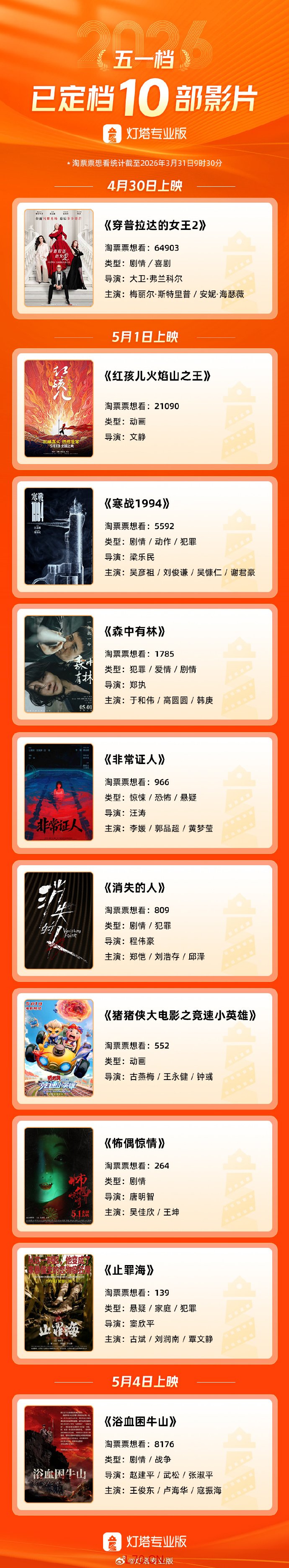 10部影片定档2026五一档
