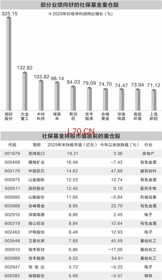 社保基金持股市值居前的重仓股一览