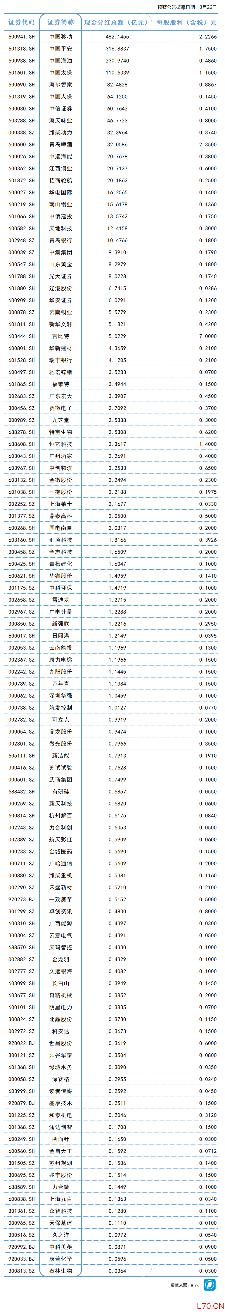 年度分红汇总丨这家公司预计派发现金红利超482亿元