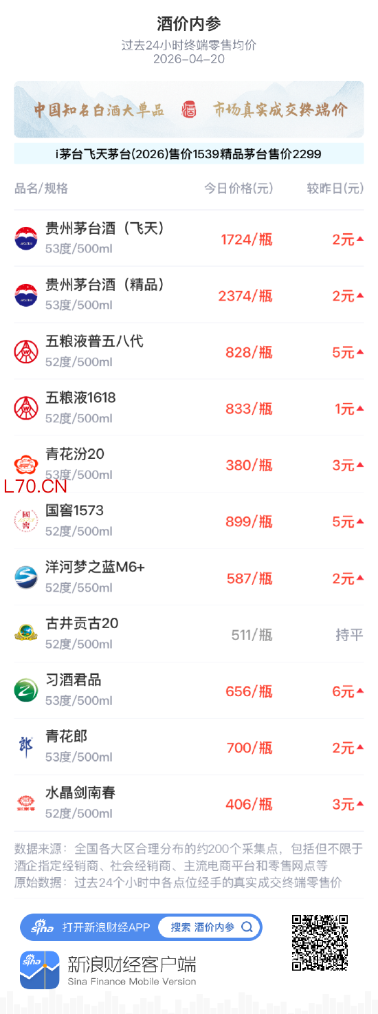 新浪财经“酒价内参”重磅上线 知名白酒真实市场价尽在掌握