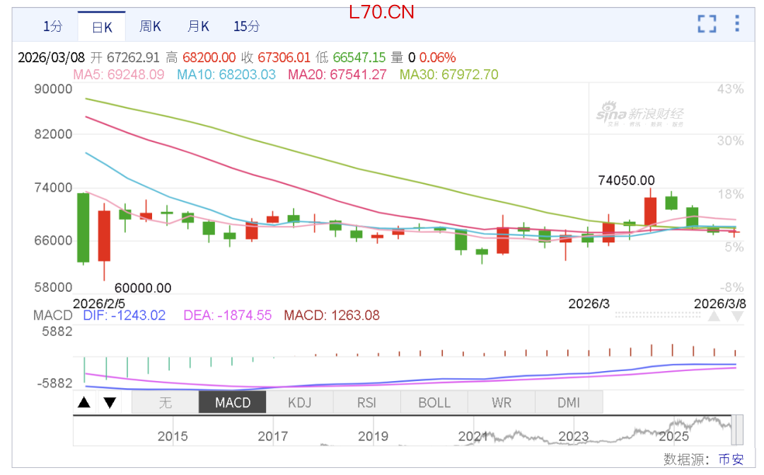 加密由于局势反复,流动性摇摆不定,本周先涨后跌,不过表现好于其它风险资产,或因为触及关键点位以及筹码出清缘故,在6~7万美元区间徘徊。