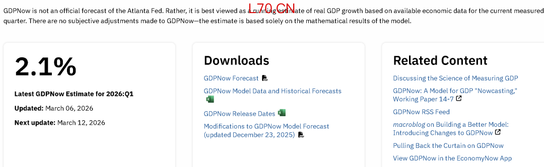 亚特兰大联储预期美一季度GDP增2.1%。
