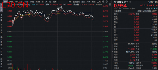 今日(3月20日)百分百布局新质生产力的——双创龙头ETF(588330)场内涨幅盘中上探3.42%,现涨1.81%,该ETF场内宽幅溢价,显示买盘资金更为强势,此前5日亦累计吸金2267万元!