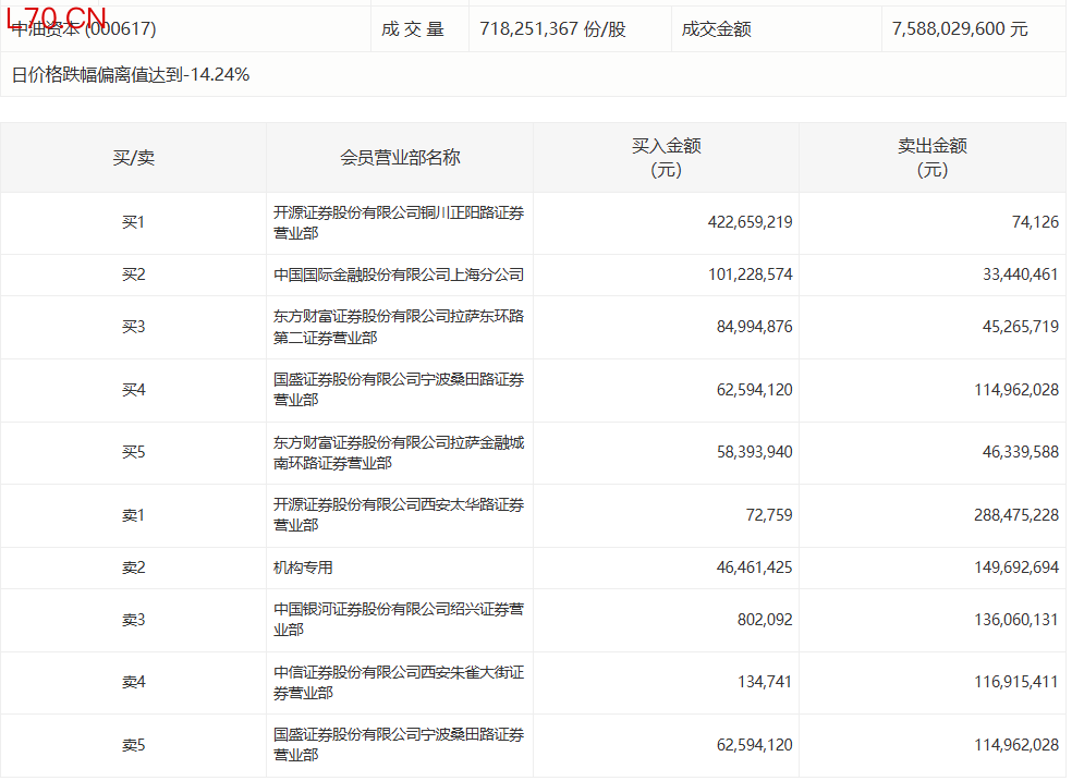 中油资本今日跌9.89%,有1家机构专用席位净卖出1.03亿元